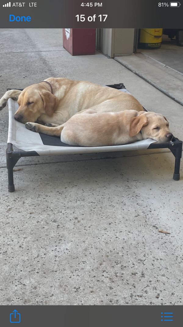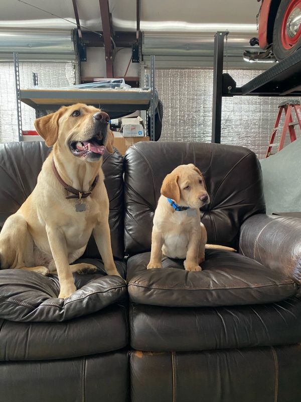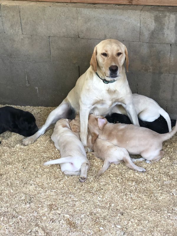 Genetically, we prefer to breed english labs for their unique, blocky features and calm temperament along with excellent hips, elbows, and eyes bred in our lines. We also breed all colors recognized by AKC: yellow, chocolate, and black.