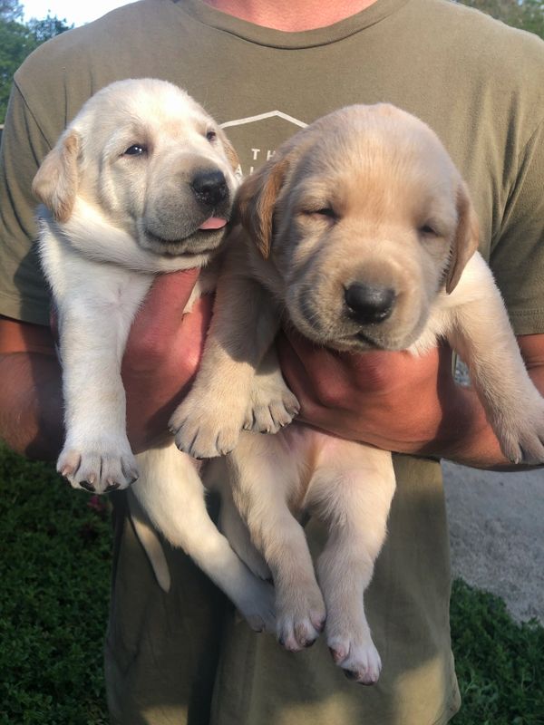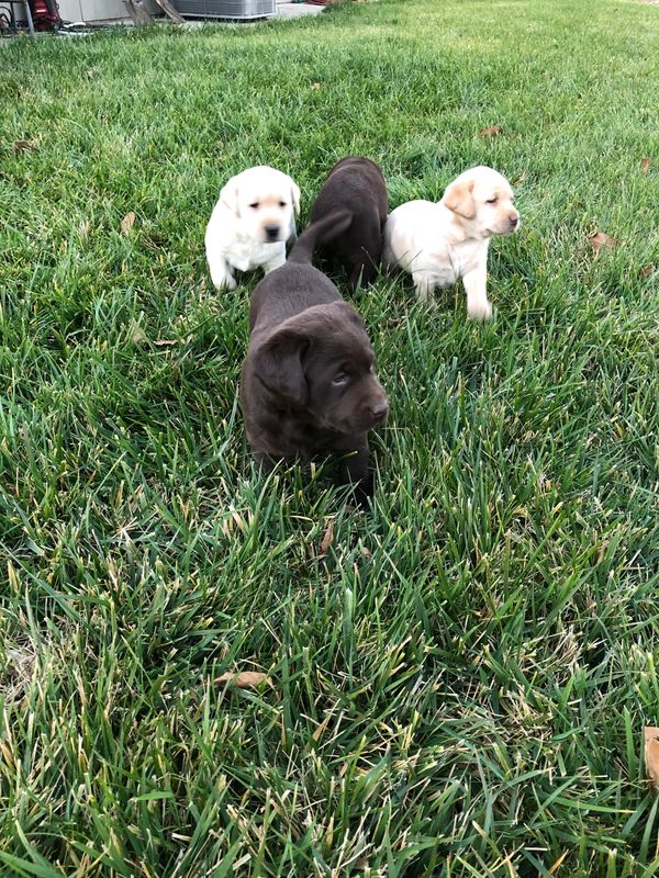 Most of Birdhuntinfools' litters are spoken for before they are 8 weeks old. Lab pups don't start showing personality till they are around 6 weeks old, so generally we schedule you (in order of your "pick") to come pick out and pick up your new pup the 1st Saturday after they are 8 weeks old. We will not hold a puppy unless it has a $300 deposit placed on it.